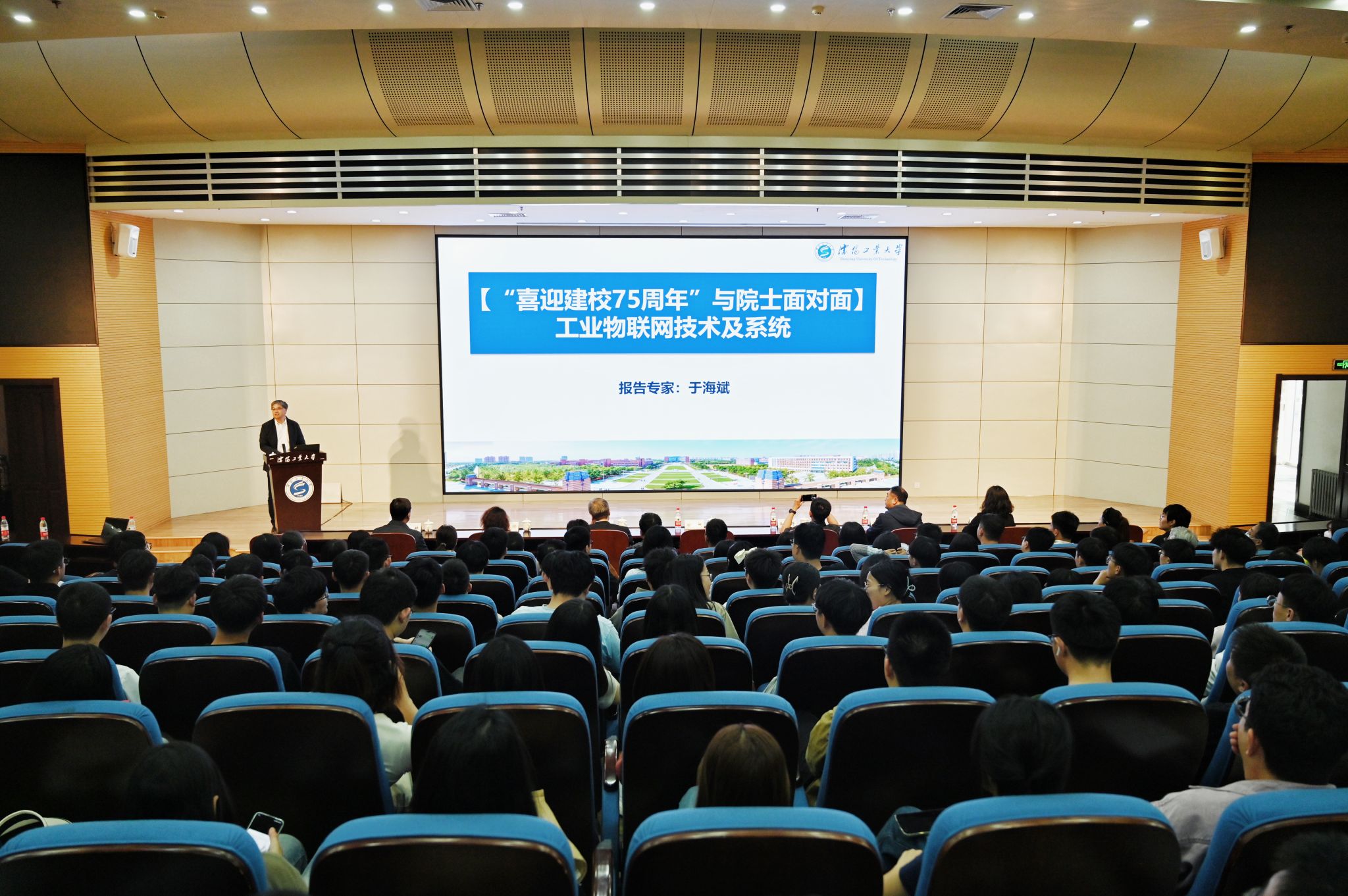 于海斌院士作了题为《工业物联网技术及系统》的专题讲座。报告中全面介绍了自动化系统由电子化向网络化演进的历程,总结了以现场总线和工业无线为代表的工业控制网络技术研究进展及其对工业自动化内涵提升和外延拓展的作用,并针对5G、互联网和大数据驱动的工业互联网时代的到来,分析了现阶段发展面临的挑战。他在研判未来工业互联网发展趋势和特征的基础上,阐述了支撑制造业务全链条自动化的新一代制造自动化体系,并与与会师生探讨了网络时代工业自动化发展值得关注的前沿和热点方向。