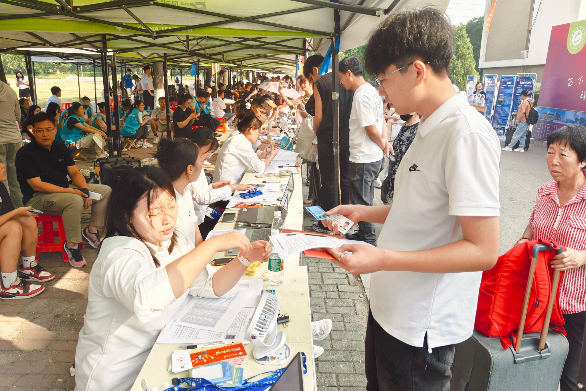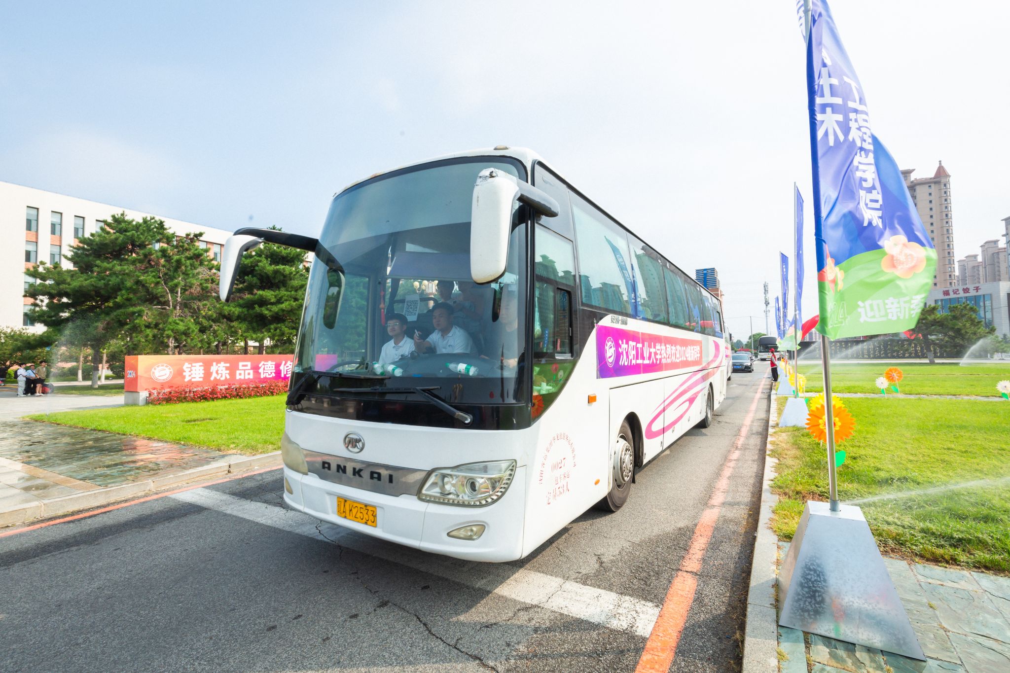 “热烈欢迎2024级新同学”“逐梦青春工大,奋进精彩年华”“七十五载传薪火,青春奋进正当燃”……踏进校园,映入眼帘的就是醒目的迎新标语和飘舞的彩旗,迎新氛围感拉满,我校迎新工作完美开局。
