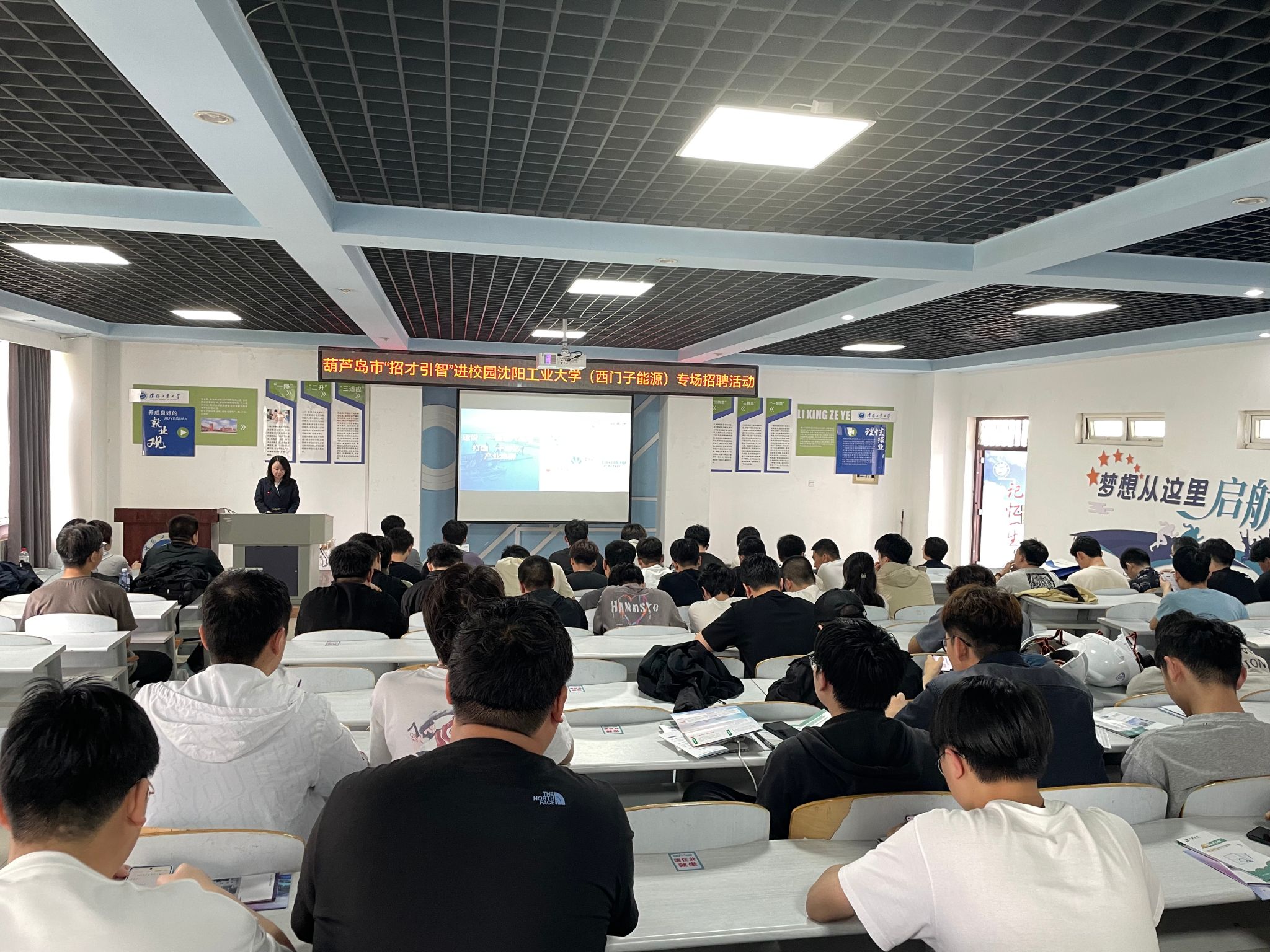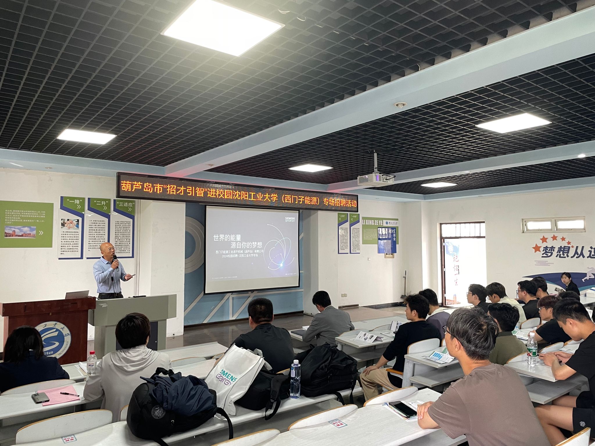 葫芦岛市“招才引智”进校园欧宝网页版登录入口(西门子能源)专场招聘会上,葫芦岛市委组织部郭楠部委对葫芦岛市政策环境进行解读,西门子能源工业透平机械(葫芦岛)有限公司王秉岩进行了宣讲,学生现场投递简历,校企互动气氛热烈。