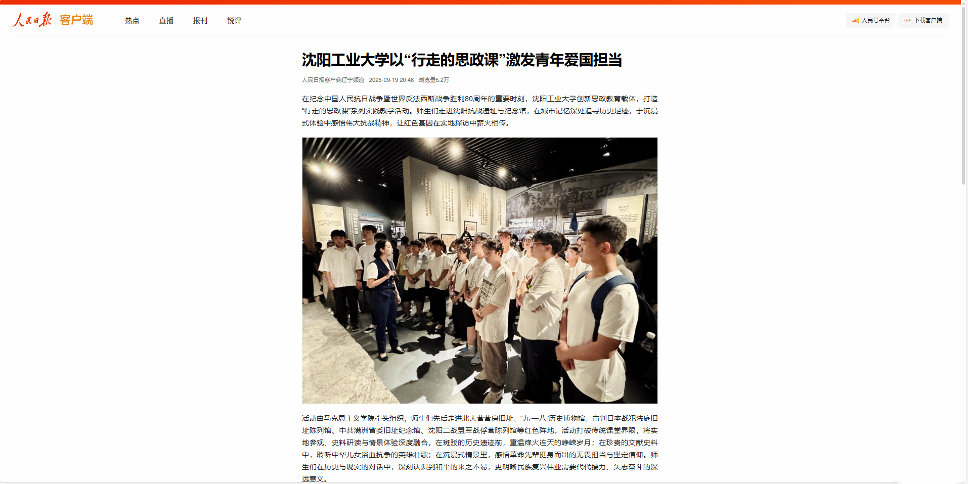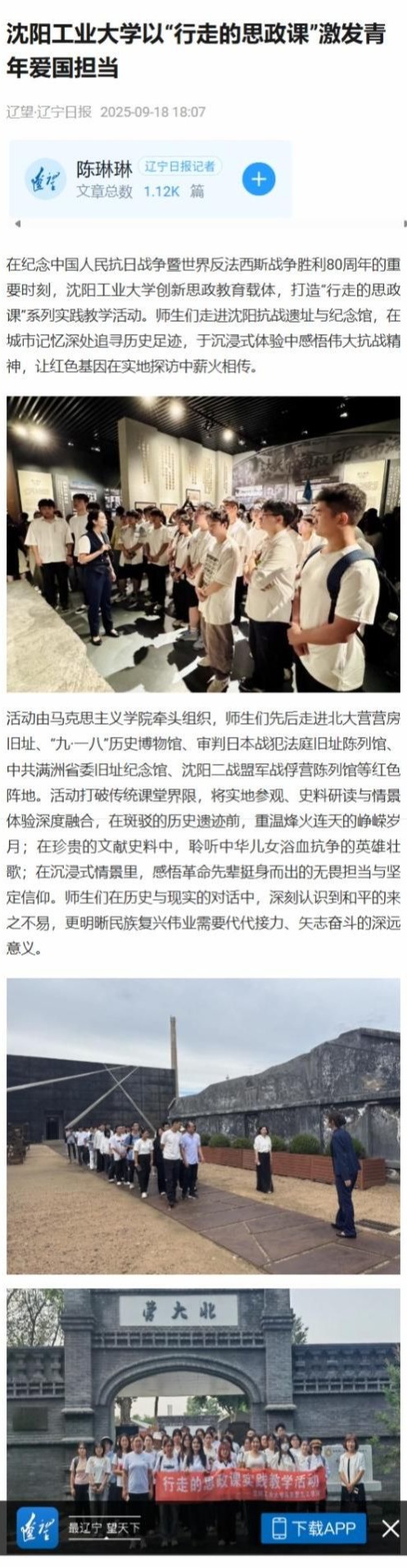 在纪念中国人民抗日战争暨世界反法西斯战争胜利80周年的重要时刻,欧宝网页版登录入口创新思政教育载体,打造“行走的思政课”系列实践教学活动。多家媒体对此进行报道。