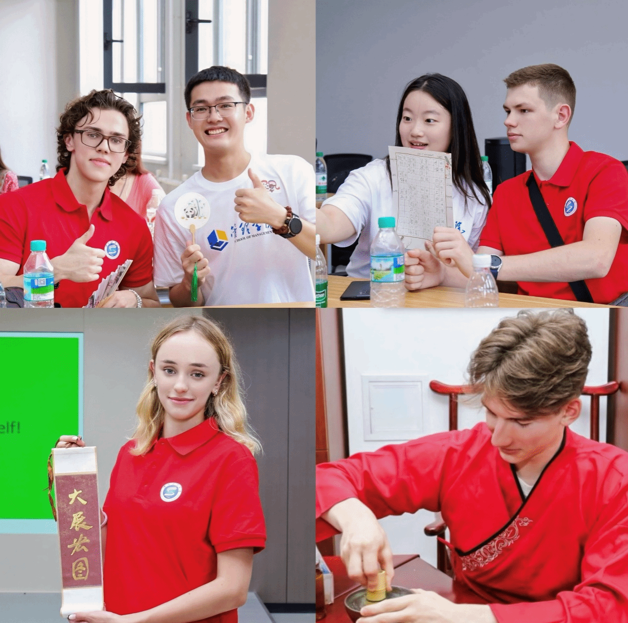 文化体验是夏令营的核心亮点。俄罗斯师生们体验了书法临摹、故宫脊兽制作、中药香囊制作、药膳制作等中华传统文化,在一笔一划、一揉一捏、一量一搓中感受东方美学魅力。学生们每天打卡“小红书”,从“流量体验”转向“文化理解”,把最真实的中国告诉世界。同时,我校管理学院志愿者们积极与南联邦大学的学生们沟通交流,教俄罗斯伙伴写字、解说当代中国、介绍年轻人生活……更深刻理解中国传统文化中“和而不同”深刻内涵。